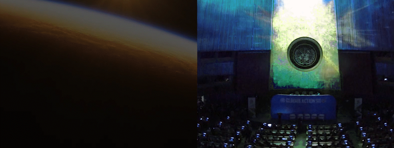 LAIR was approached by the United Nations to create an immersive video experience to fill the walls of the UN General Assembly Hall during the 2019 Climate Action Summit. Lair was also responsible for orchestrating the run of show, which included 65 individual speakers. LAIR created two 4-minute films, a graphic toolkit, designed and built the set and stage, and ran event logistics. The first film opened the Summit and emphasized the devastating results of climate change and the second film closed out the summit with a powerful call to action.